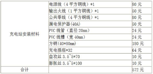 假設(shè)購買的是32路智能充電站,那么其價格在2000元左右,其附屬材料所需要的價格大約在600元左右。具體材料及價格可以參照下表格。再加上些瑣碎的費(fèi)用,預(yù)計臺智能小區(qū)充電站的所有費(fèi)用在3000元左右,這是不含安裝費(fèi)用的價格,由于具體的每個品P、地區(qū)的政策都不太樣,這里將不再列舉安裝費(fèi)用。