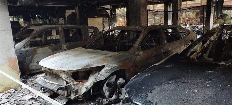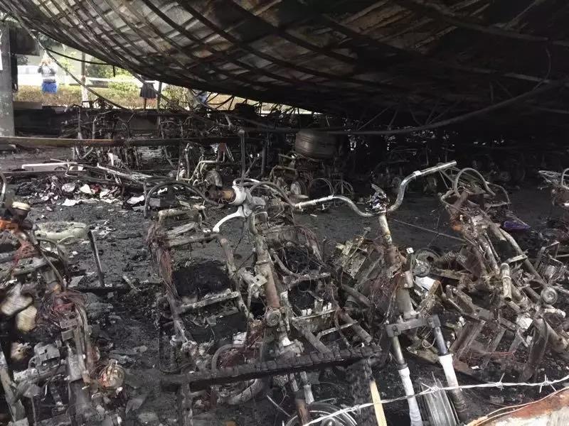 一排排電瓶車被燒成鐵架